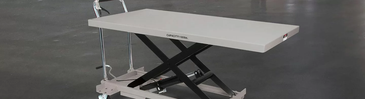 JET Tools' mobile scissor lift tables are a convenient and reliable way to maneuver small, but heavy materials. Move equipment with ease by using our hydraulic scissor lift table carts.